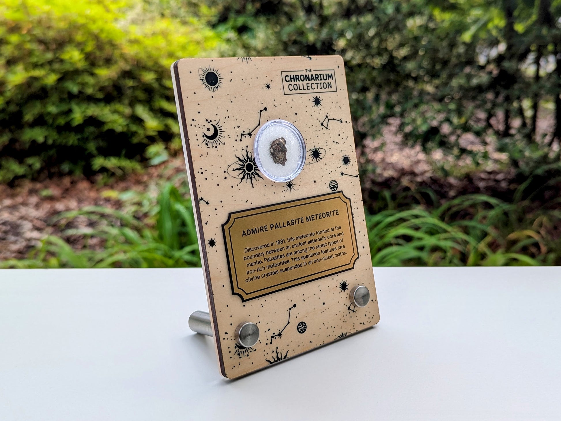 Each meteorite specimen is presented in a a removable display jar, allowing you to examine it up close whenever curiosity strikes.