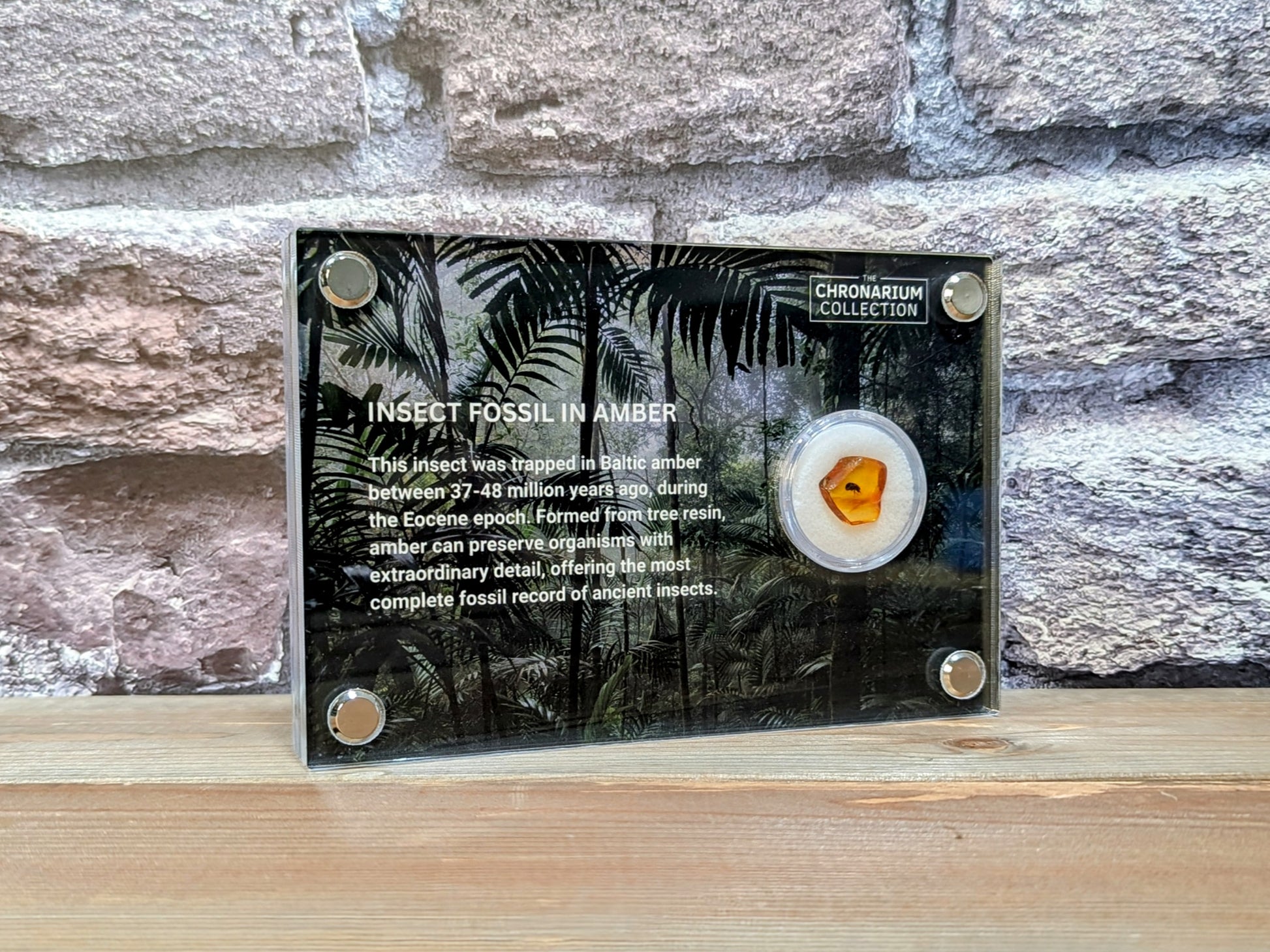 Each specimen is authentic Baltic amber containing at least one identifiable insect inclusion. Sizes vary from a few millimeters to about a centimeter, and each piece is unique. A genuine relic of deep time, this amber captures a fleeting moment of life from a vanished world.