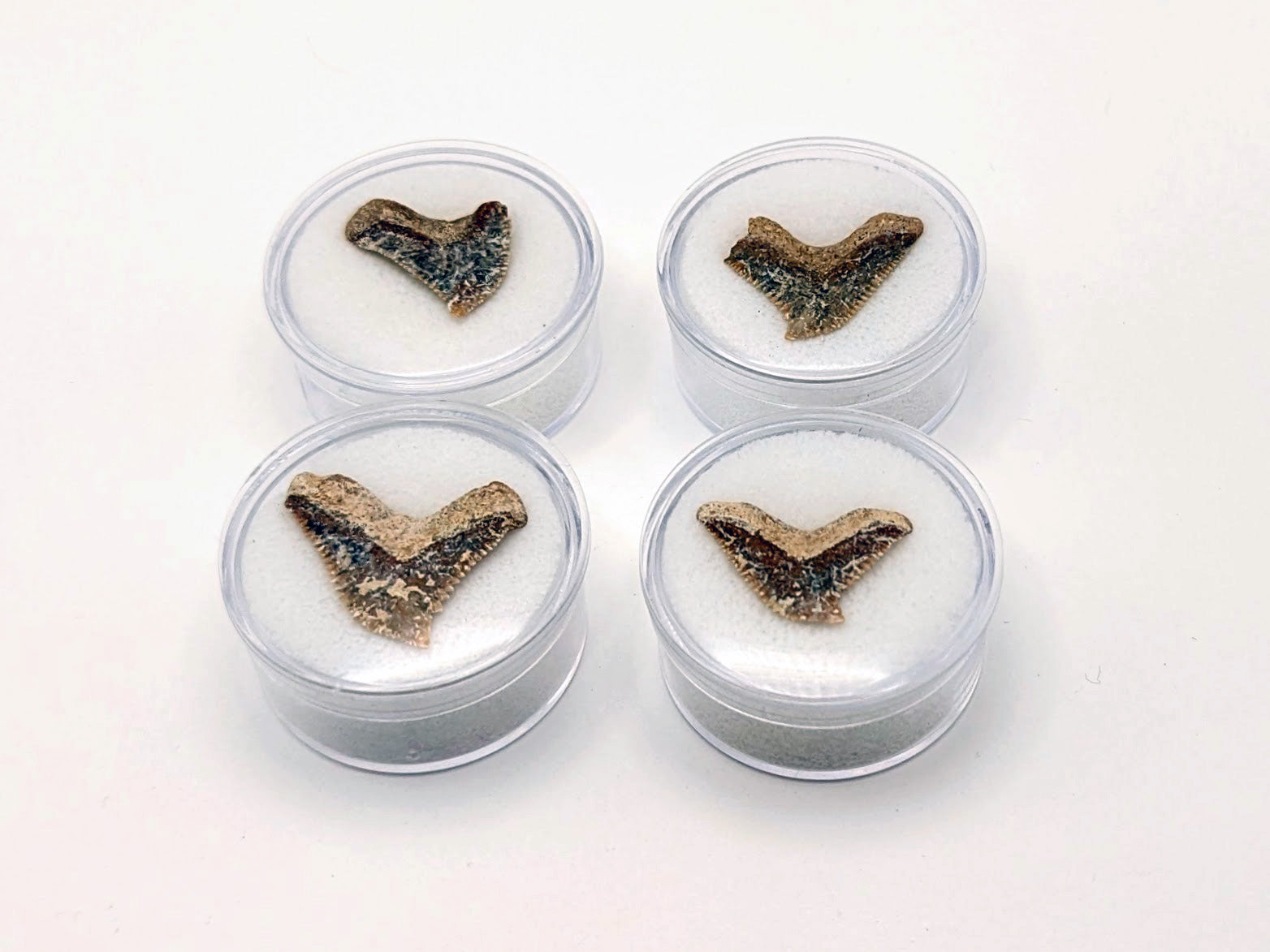 Tiger sharks are known for their distinctive, serrated teeth, perfect for slicing through prey — and these fossils preserve that iconic feature. Each tooth exhibits the characteristic asymmetrical shape and fine serrations that made these predators so effective.