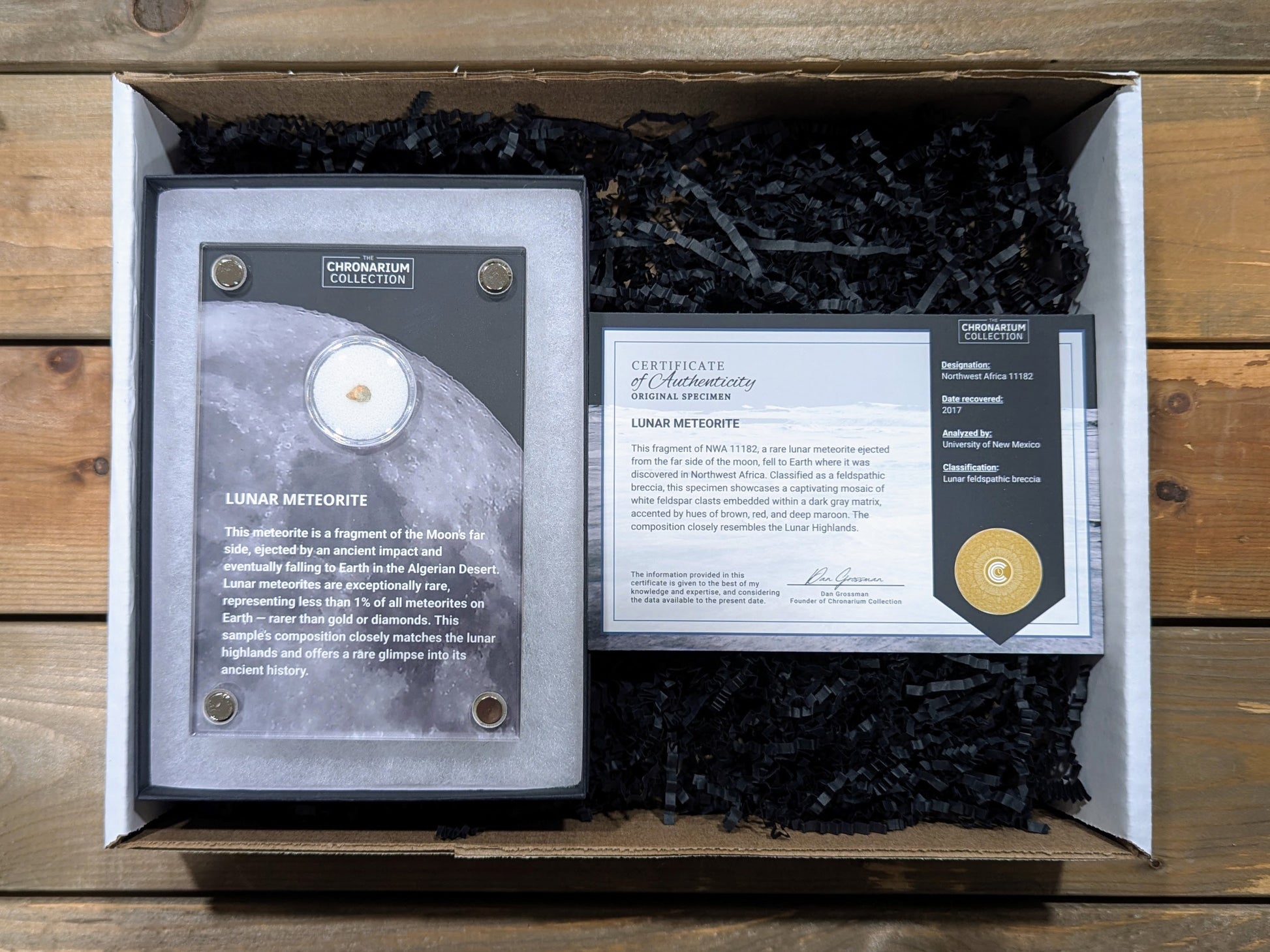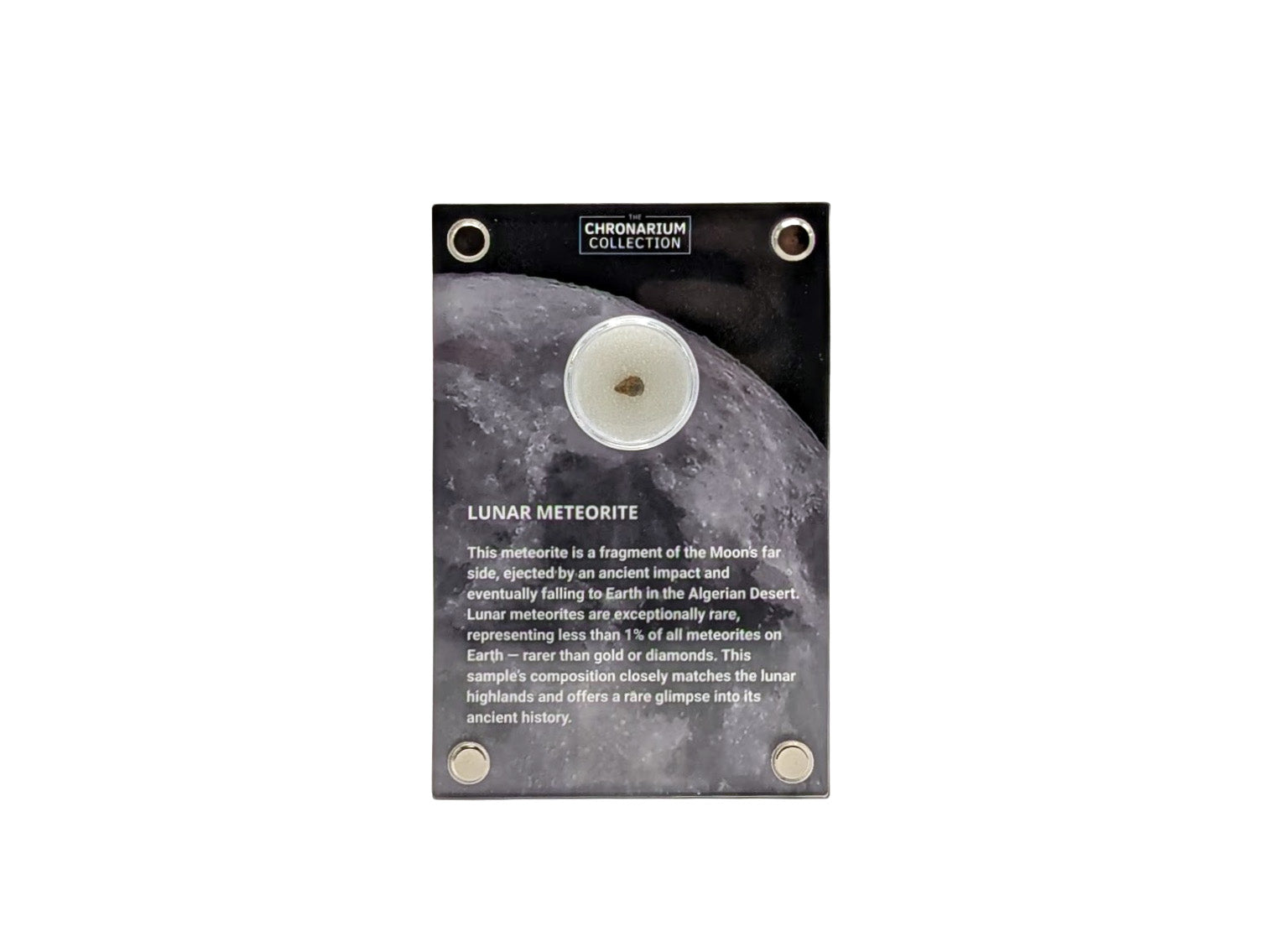 Lunar meteorites are exceptionally rare, representing less than 1% of all meteorites on Earth—rarer than gold or diamonds. Every piece is unique, and no two will ever be exactly alike. Your fragment began its journey on the Moon’s surface before a massive impact ejected it into space, where it traveled thousands of miles before landing on Earth.