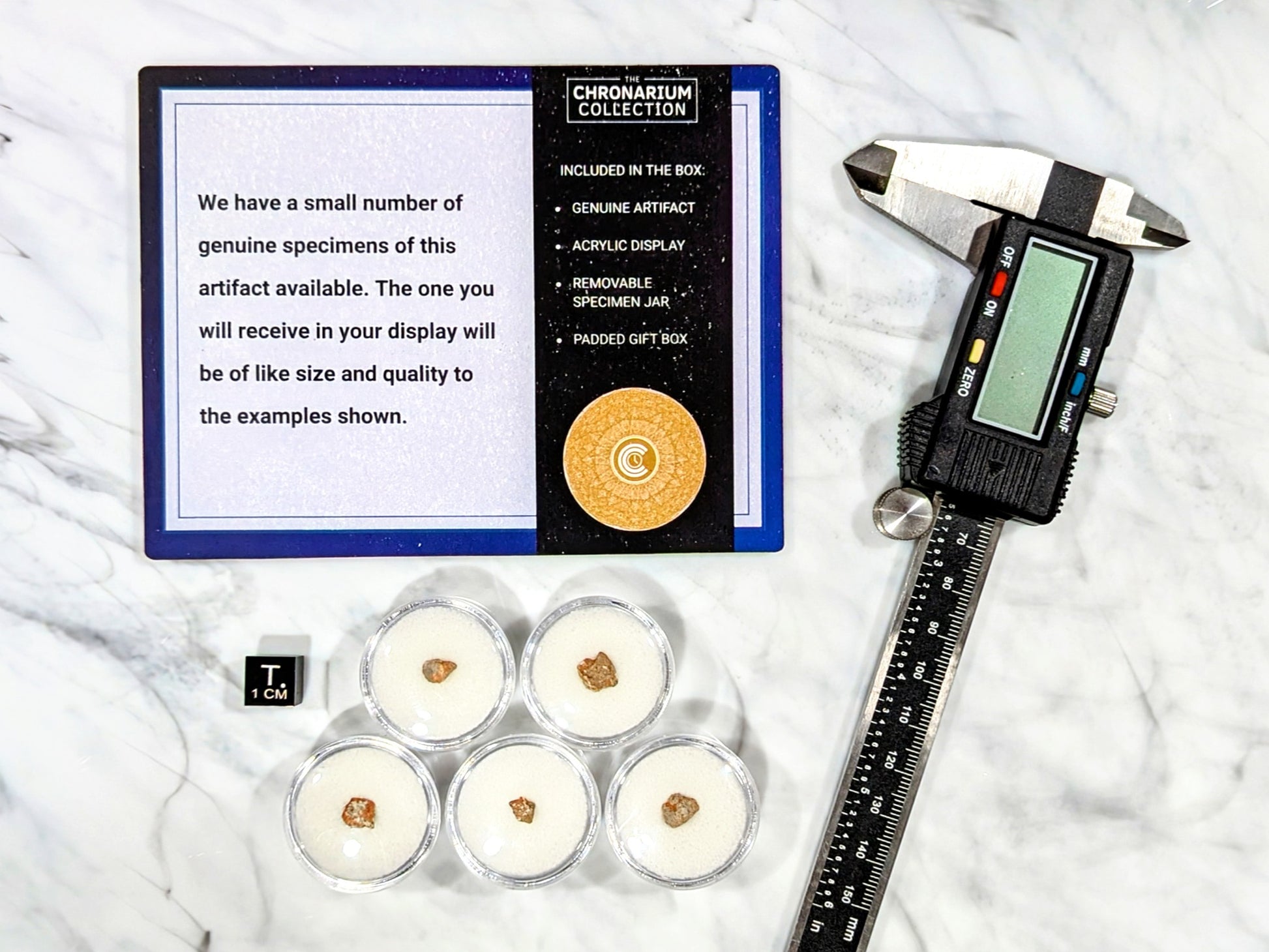 We have several authentic fragments of Bechar 003 available, typically 0.25-0.5 cm in size. You will receive our choice from the available samples, but the photos reflect the size and composition to expect.