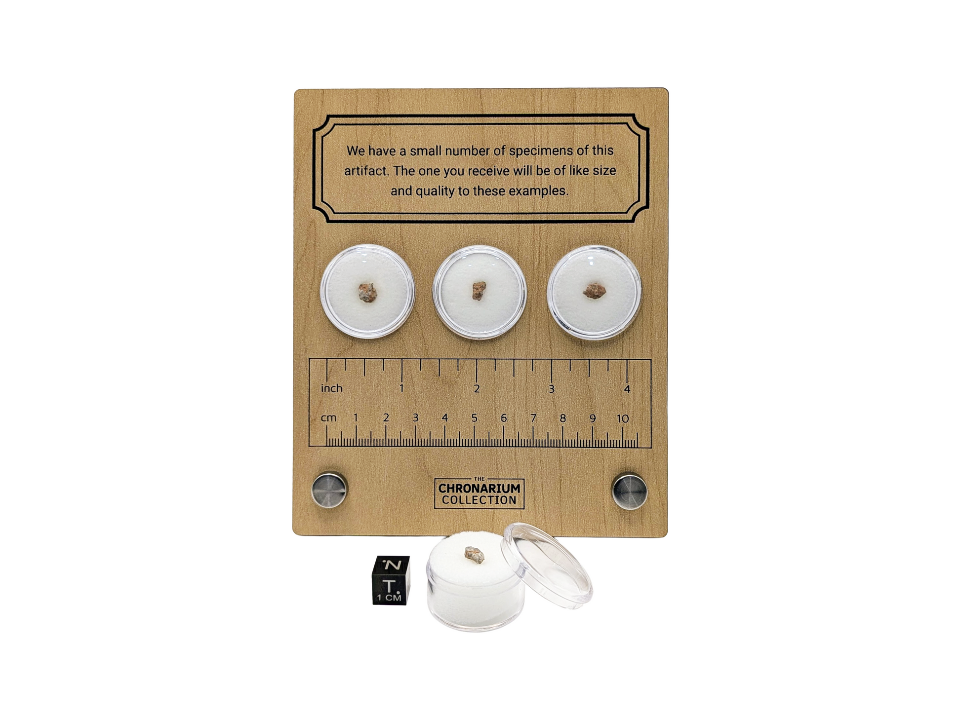 We have several authentic fragments of Bechar 003 available, typically 0.25-0.5 cm in size. You will receive our choice from the available samples. Whether displayed on your desk, in a cabinet of curiosities, or alongside your telescope, Bechar 003 is a conversation piece that connects you directly to another world. It’s more than a collectible—it’s history, science, and adventure condensed into the palm of your hand.